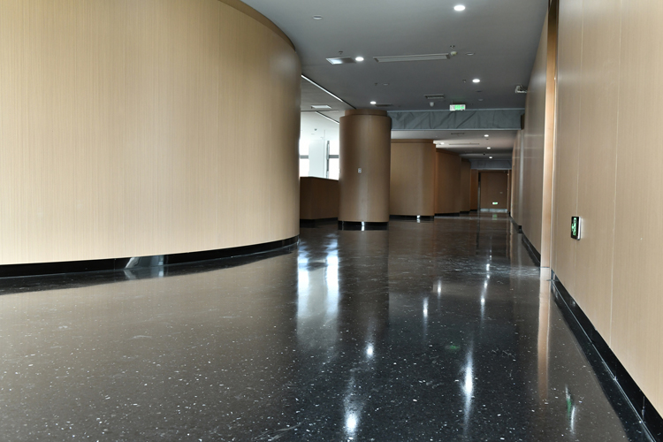 渤海科技大學(xué)9號樓大廳、走廊,以及體育場館看臺、走廊、內(nèi)廊等均由秀珀SET 琥珀石藝術(shù)地坪系統(tǒng)打造。