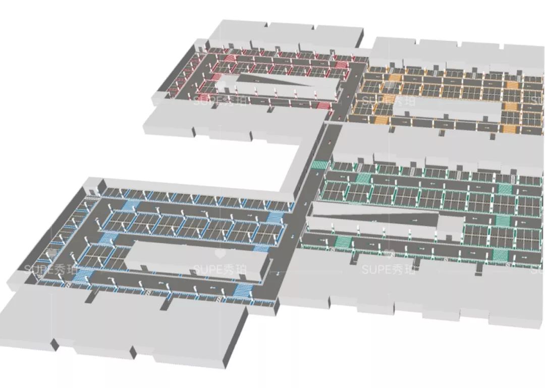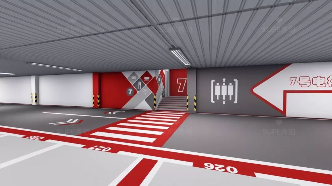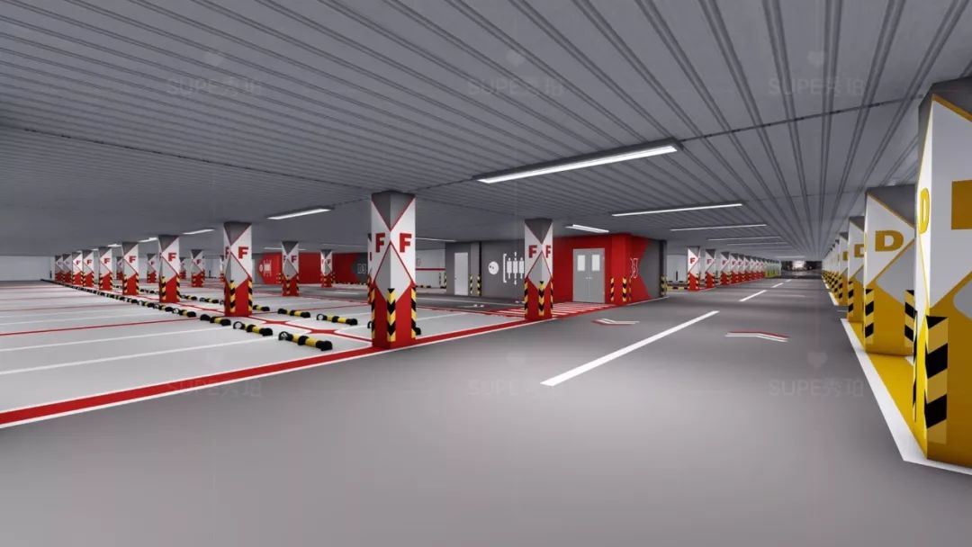 適用于商業(yè)類建筑停車場(chǎng),采用活躍的中強(qiáng)對(duì)比的配色方式,烘托商業(yè)景象。